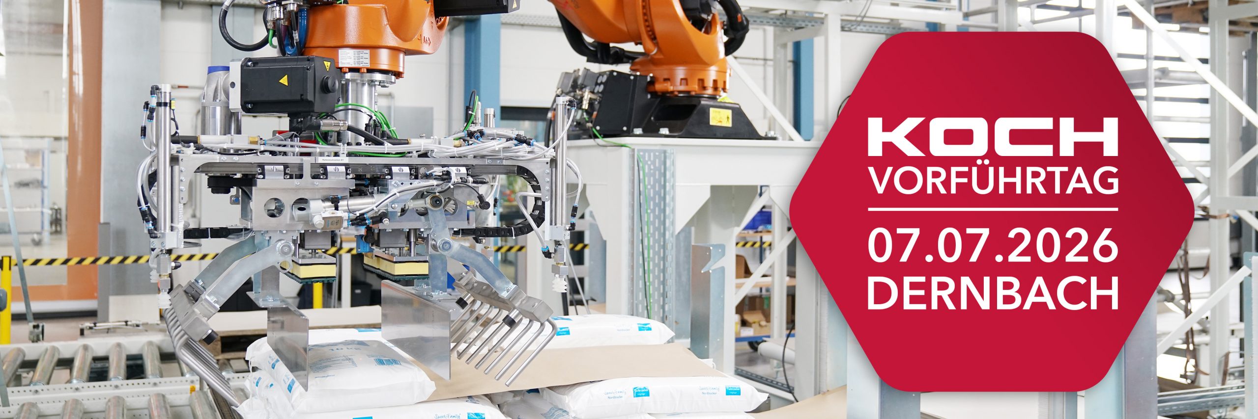Im Fokus stehen Verpackung und Palettierung: Sie sehen Robotersysteme für Rollen, Hobbocks, Kartons und Säcke – mit praxisnahen Testaufbauten aus Converting, Chemie, Keramik und Nahrungsmittel, direkt aus realen Projekten.